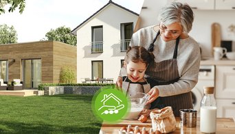 - Haustyp und Ausrichtung: Ideal ist eine Ausrichtung, die sich am Lauf der Sonne orientiert. Großzügige Fenster auf der Südseite lassen viel Tageslicht einströmen und erzielen zusätzliche solare Energiegewinne. Eine hochwärmedämmende Gebäudehülle sorgt dafür, dass die Energie im Innern des Gebäudes bleibt. Zusammen mit einer kompakten Gebäudeform werden Energieverluste auf ein Minimum reduziert.